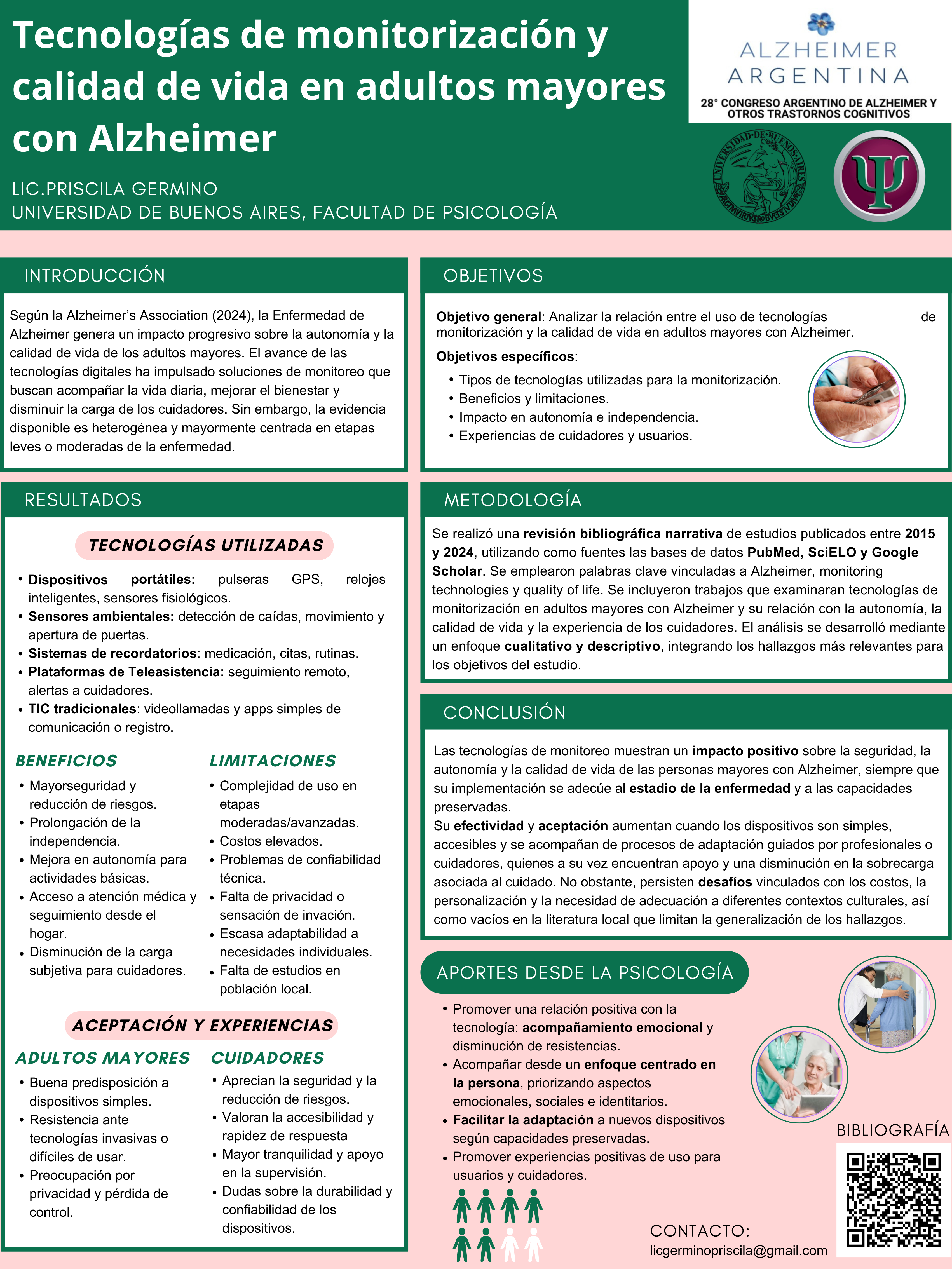 | Análisis de la relación entre el uso de tecnologías de monitorización y la calidad de vida en adultos mayores con Alzheimer | Priscila Germino |