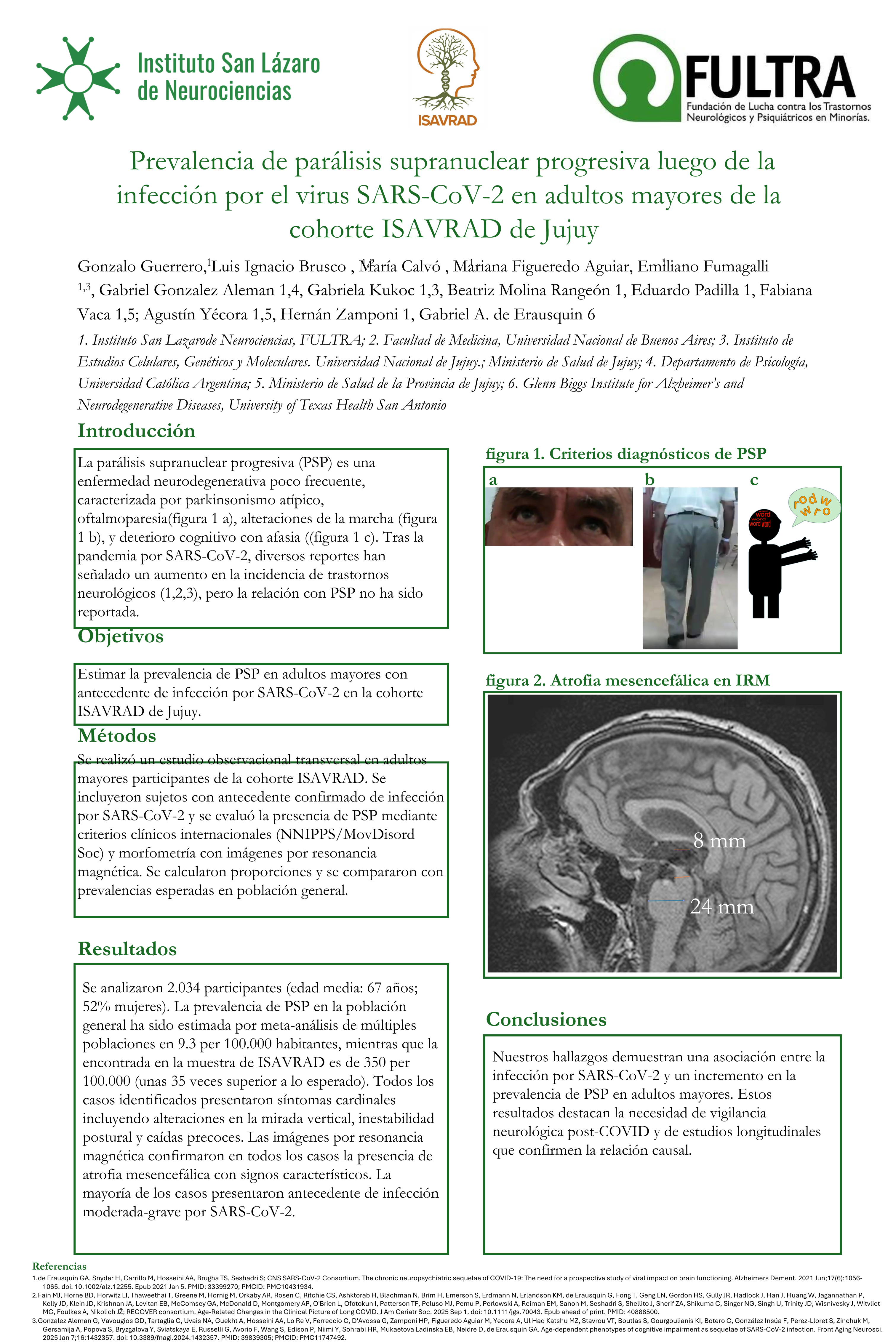 | Prevalencia de parálisis supranuclear progresiva luego de la infección por el virus SARS-CoV-2 en adultos mayores de la cohorte ISAVRAD de Jujuy | Gonzalo Guerrero (Erausquin) |