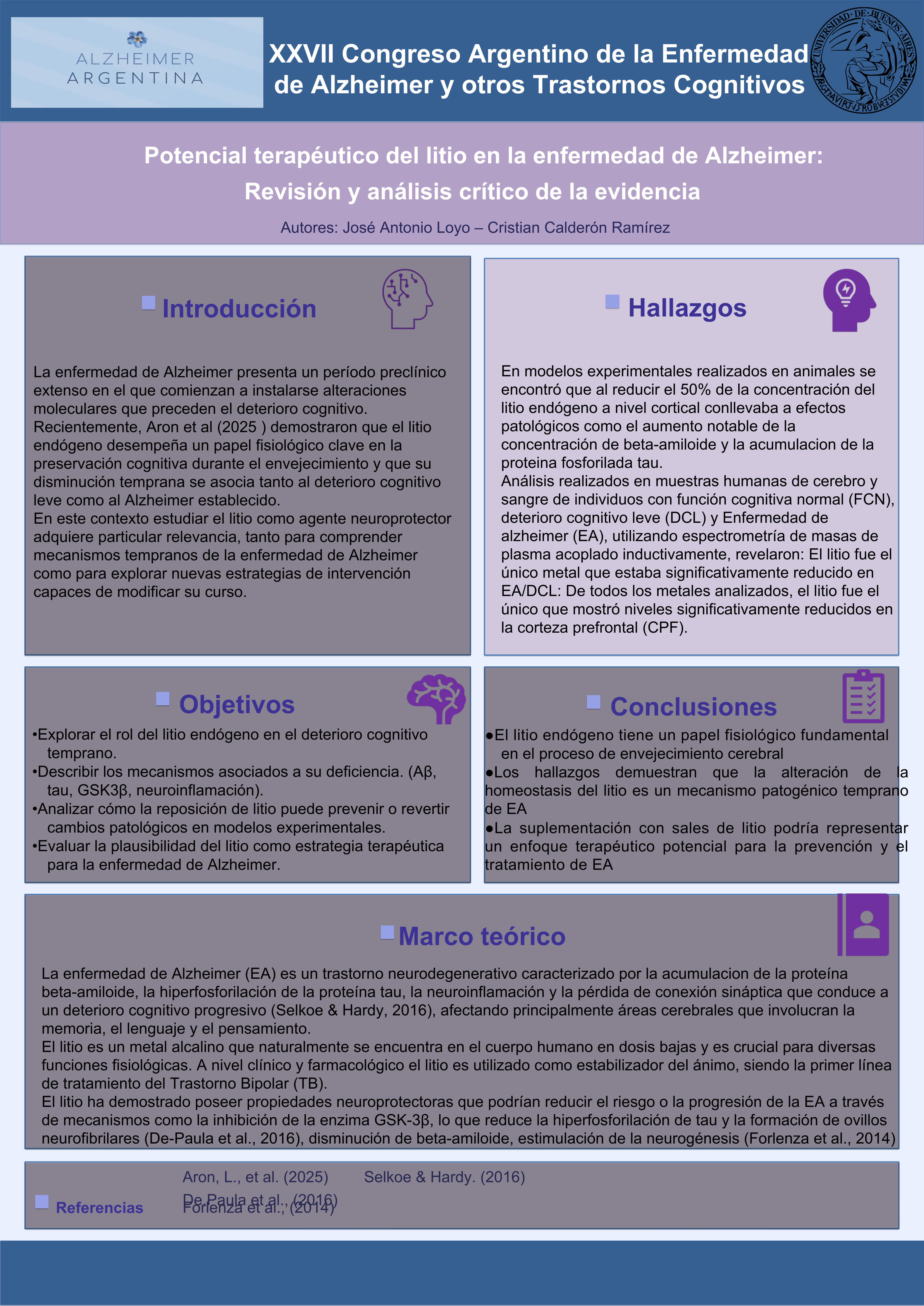 | Potencial terapéutico del litio en la enfermedad de Alzheimer: revisión y análisis crítico de la evidencia | Jose A. Loyo |