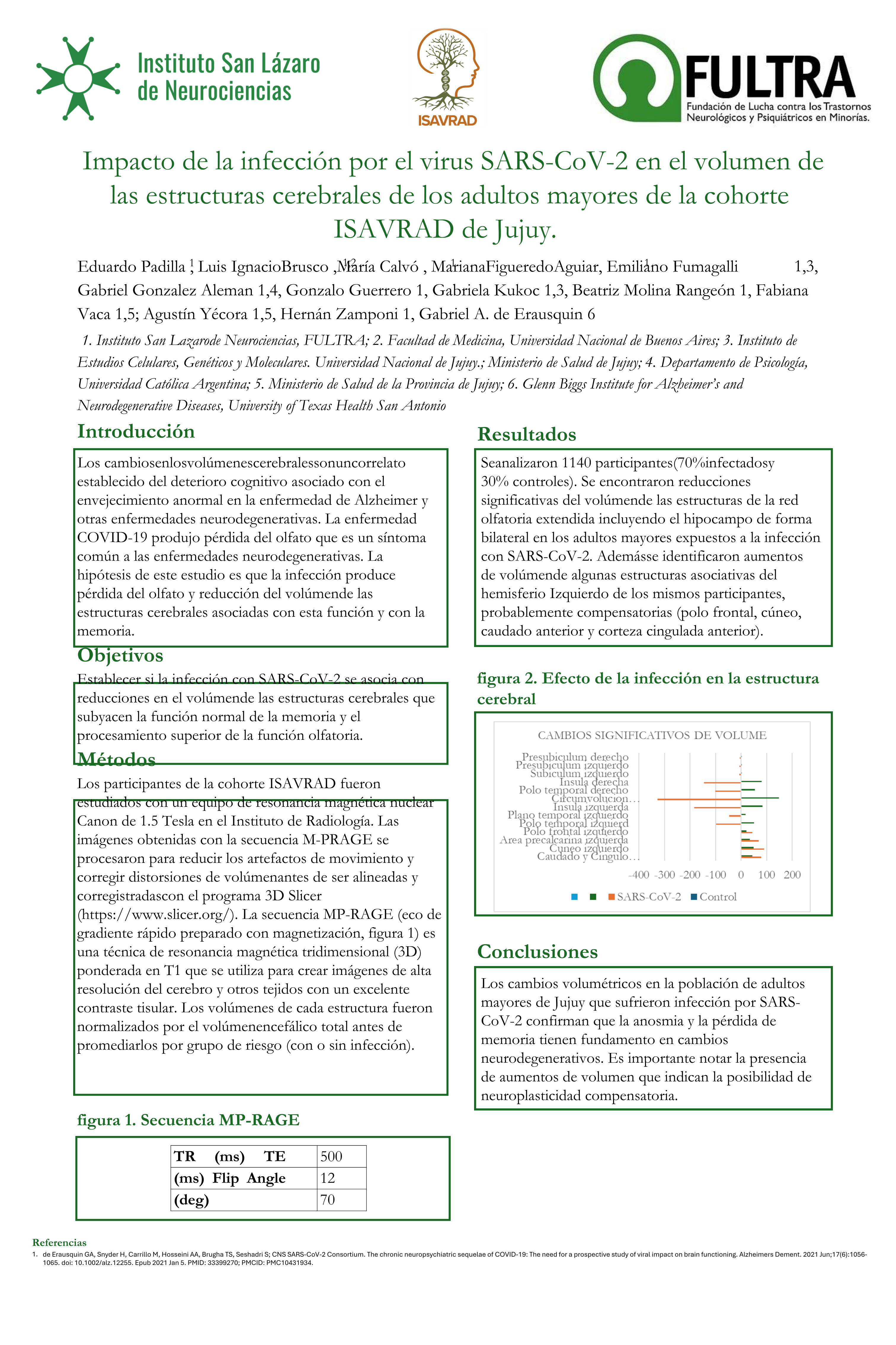 | Impacto de la infección por el virus SARS-CoV-2 en el volumen de las estructuras cerebrales de los adultos mayores de la cohorte ISAVRAD de Jujuy | Eduardo Padilla (Erausquin) |