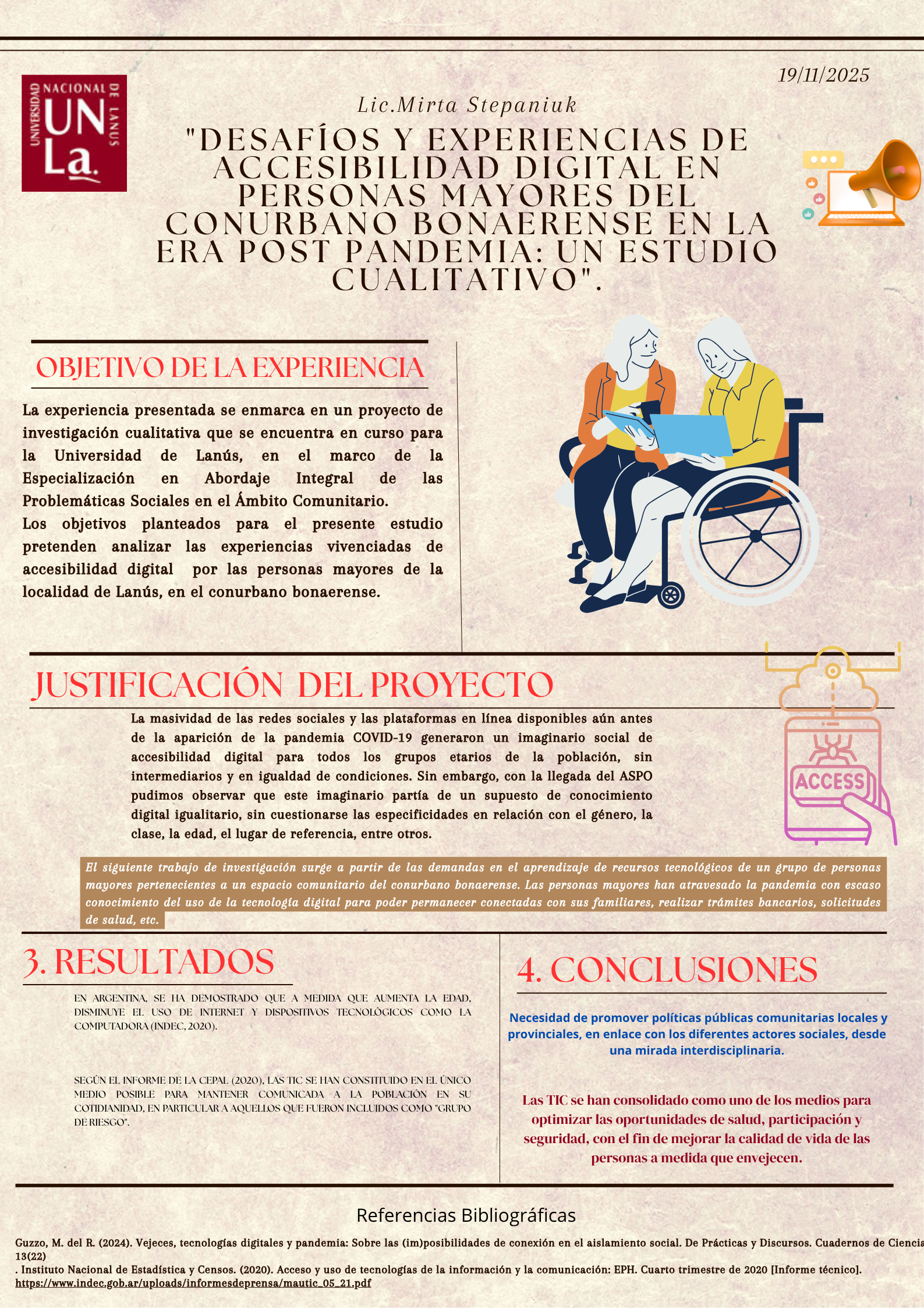 | Desafíos y experiencias de accesibilidad digital en personas mayores del conurbano bonaerense en la era post pandemia: Un estudio cualitativo | Mirta Claudia Stepaniuk |