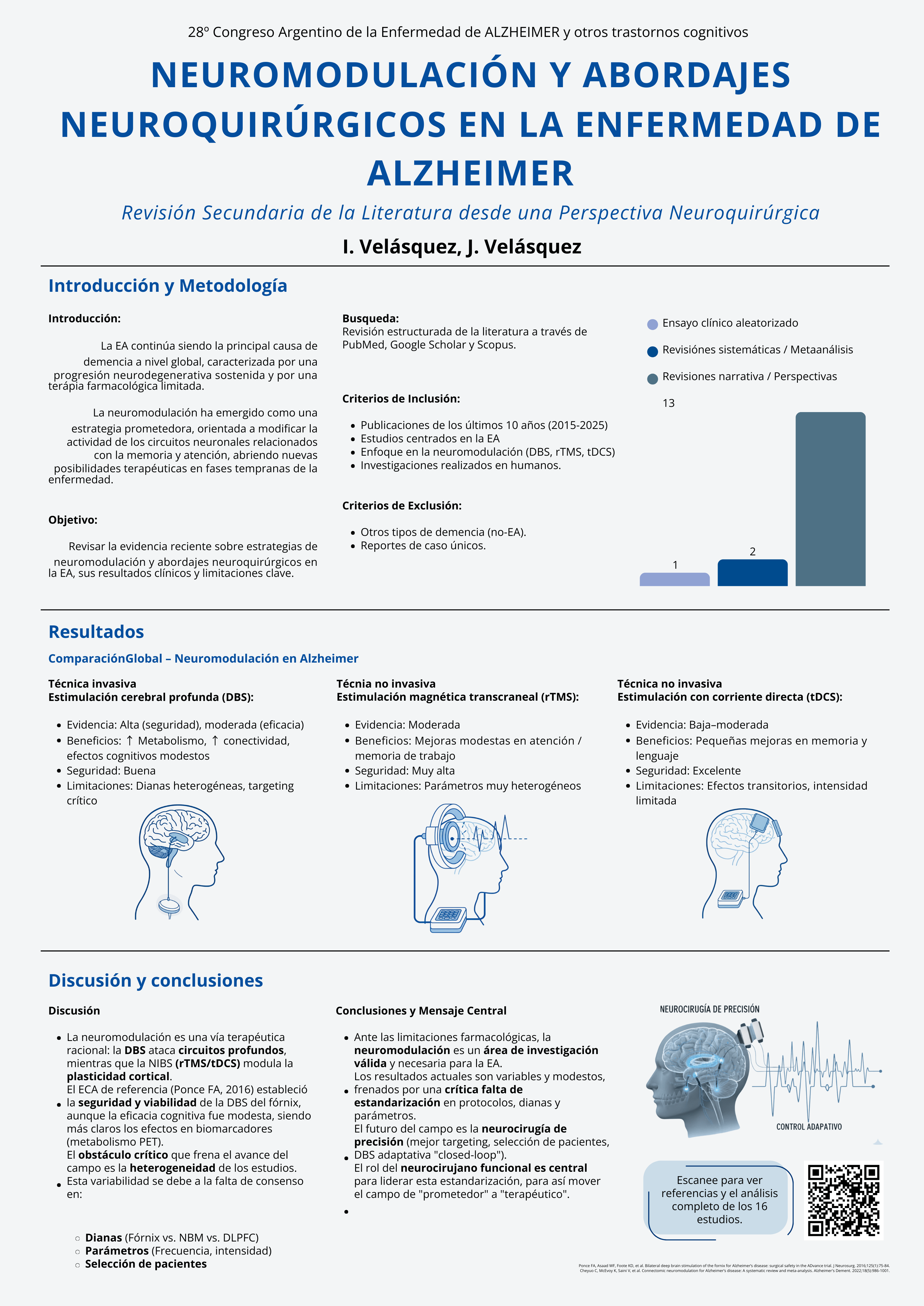 | Neuromodulación y abordajes neuroquirúrgicos en la enfermedad de Alzheimer: revisión secundaria de la literatura desde una perspectiva neuroquirúrgica | Ivan Velásquez |