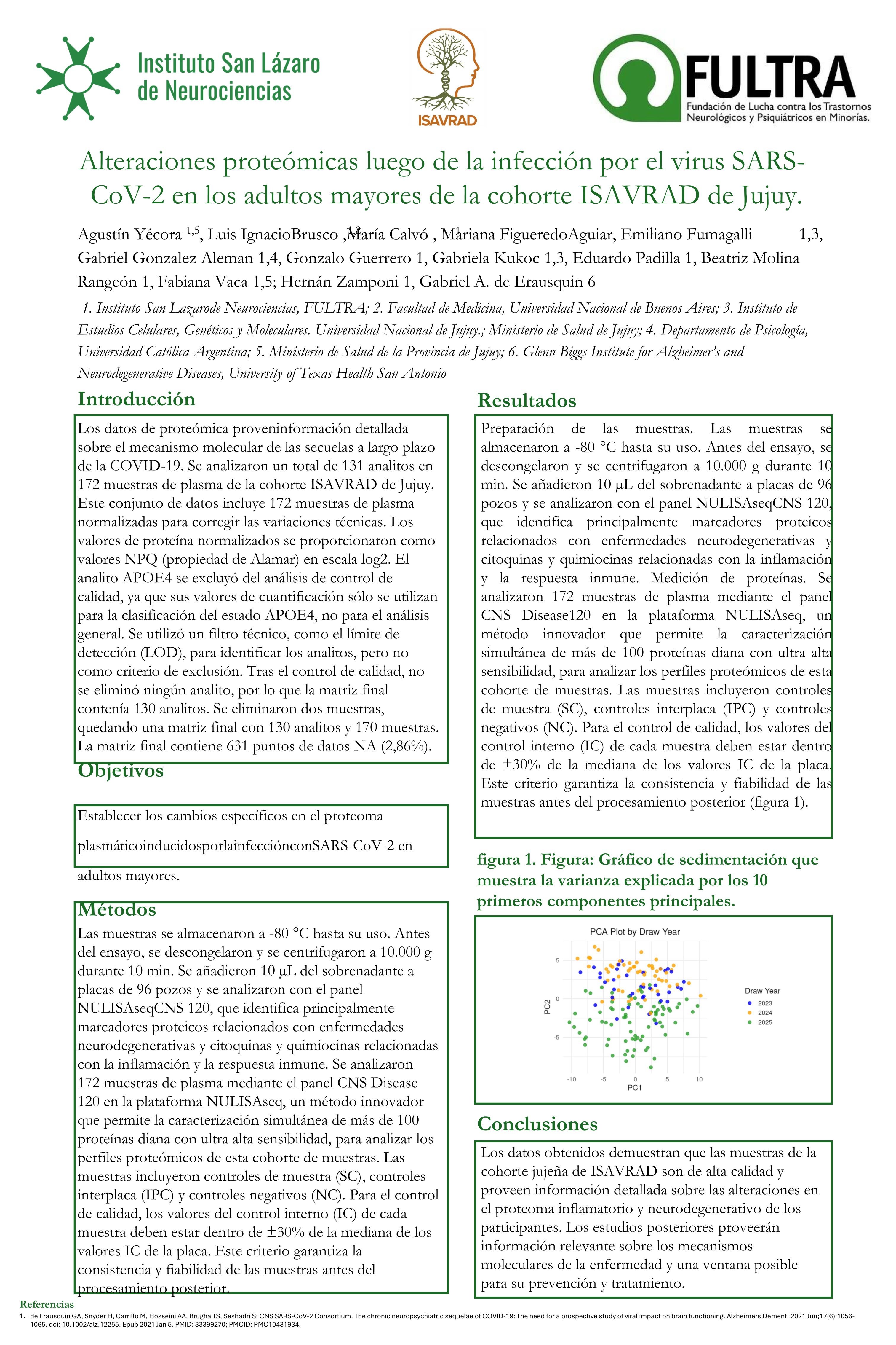 | Alteraciones proteómicas luego de la infección por el virus SARS-CoV-2 en los adultos mayores de la cohorte ISAVRAD de Jujuy | Agustín Yécora (Erausquin) |